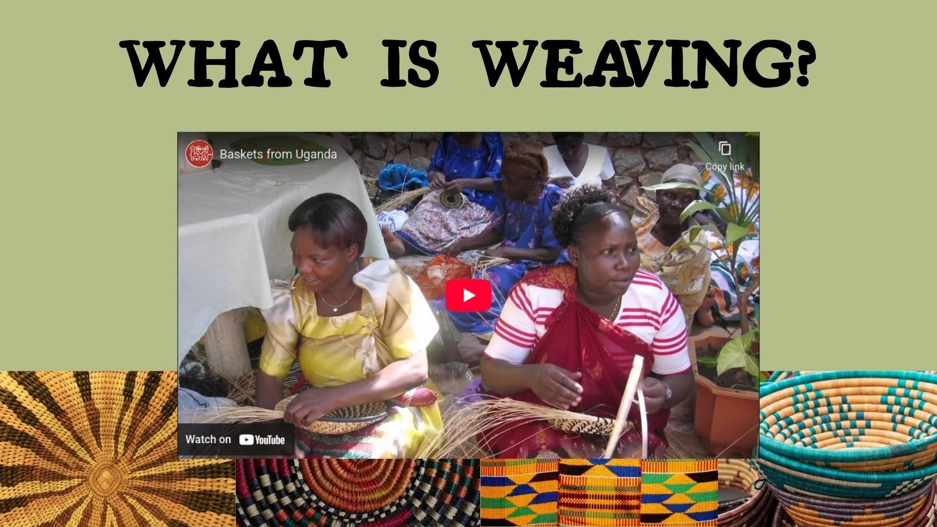 Explore the cultural-significance of weaving in Ugandan and African culture with this presentation, “What is weaving?”, then make your very own cardboard loom and woven creation! This at-home art activity is great for kids of many different ages and skillsets, and the complexity and intricacy can be scaled up or down according to ability. Get really creative and cut out a heart-shaped loom, or utilize many different colors of yarn for an eye-catching creation.